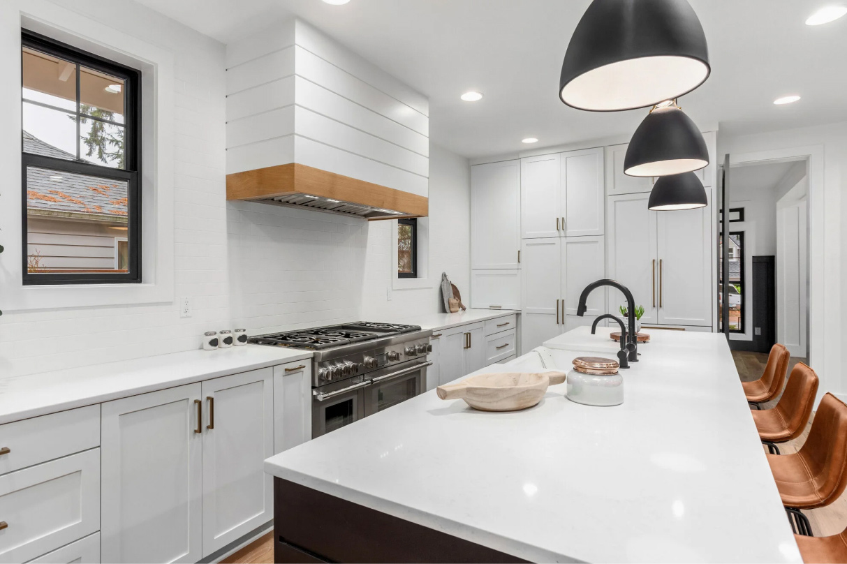 Choose from premium materials like quartz, granite, marble, or butcher block to create durable, high-end surfaces for your kitchen.